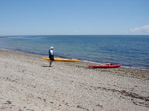 kayaks and the gear from the truck to the beach. We loaded the kayaks,